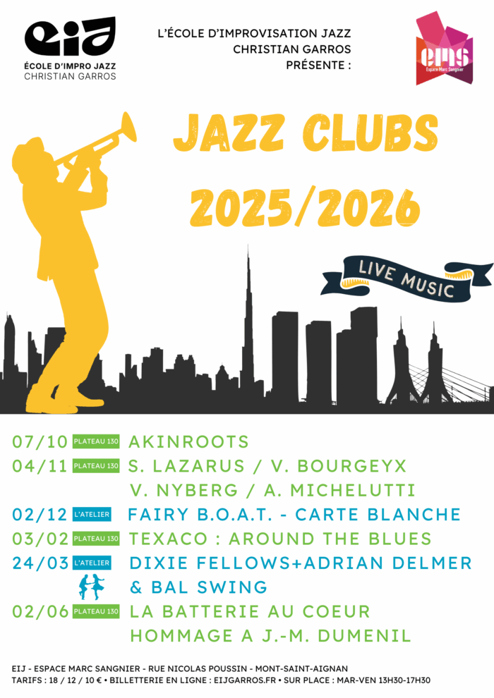 Tarifs réduits : 12 € (-18 ans, étudiants, demandeurs d’emploi) – 10 € (-12 ans, élèves de l’EIJ)
